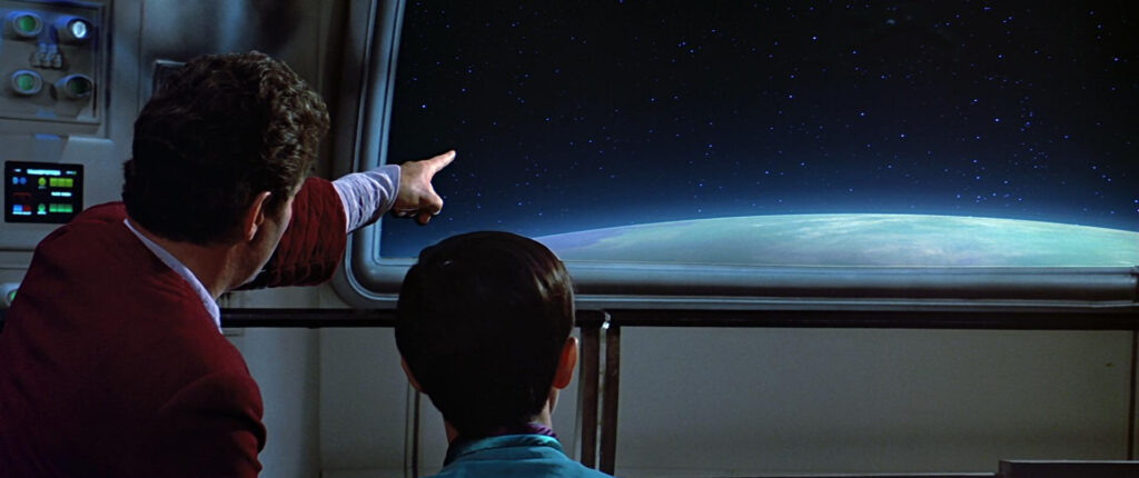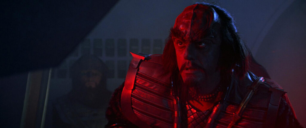 While Horner’s introduction of his theme during the sequence where Kruge destroys the freighter carrying Valkris is quite excellent, my favorite use of it occurs later in the film as Enterprise, having been stolen by Admiral Kirk and company, arrive at the Genesis Planet. Looking for USS Grissom (unknowingly destroyed by the Klingons), Kirk recognizes a distortion, which turns out to be Kruge’s ship cloaked and lurking in orbit.